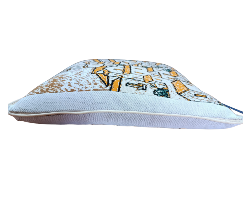 Our cushion is crafted in 100% jacquard-woven cotton with goose down filling, adding a touch of art and comfort to your home. The colorful figurative design of Matera transforms this cushion into a distinctive element for any setting. The cover is equipped with a zipper and is fully washable by following the care instructions. The vibrant and artistic Matera design celebrates the city’s beauty and culture, bringing a splash of color to your space. Perfect for the living room, bedroom, terrace, or any corner of your home in need of style and comfort.
